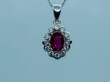 Description: High quality .70ctw natural Ruby and Diamond 18K gold pendant and chain. Beautiful oval cut .53ct natural Ruby surrounded by .17ctw of round brilliant cut diamonds in an 18K white gold setting and chain. This piece comes with an appraisal from the North American Gemological Laboratory and was appraised for $2,850 on 12/6/2019.