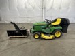 Description: John Deere 345 48'' powered by a 20hp liquid-cooled V-twin engine and equipped with power steering. Runs and operates with 1,205 hours. Includes a bagger and 42" snowthrower attachment.