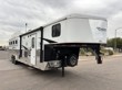 Description: 2022 Bison Ricochet 8411B 3-Horse Gooseneck equipped with a living quarters including a bed, full bathroom, and a kitchenette.